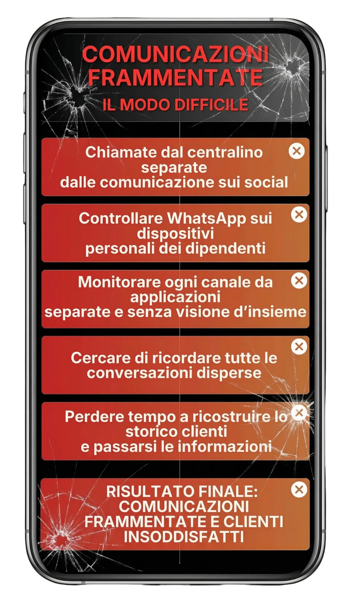 Eliminare le comunicazioni tra clienti e dispositivi personali dei dipendenti (grave problema quando il dipendente lascia l’azienda, portandosi via informazioni preziose e non recuperabili sulla clientela).