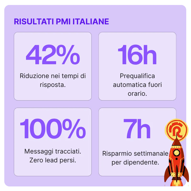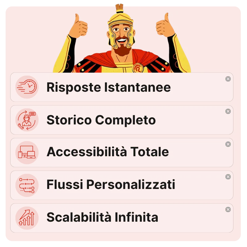 ...E a sua volta, trasformare questi benefici in più vendite chiuse, clienti più soddisfatti e un'azienda che risponde sempre — anche fuori orario, anche quando gli uffici sono chiusi o i tuoi collaboratori impegnati.